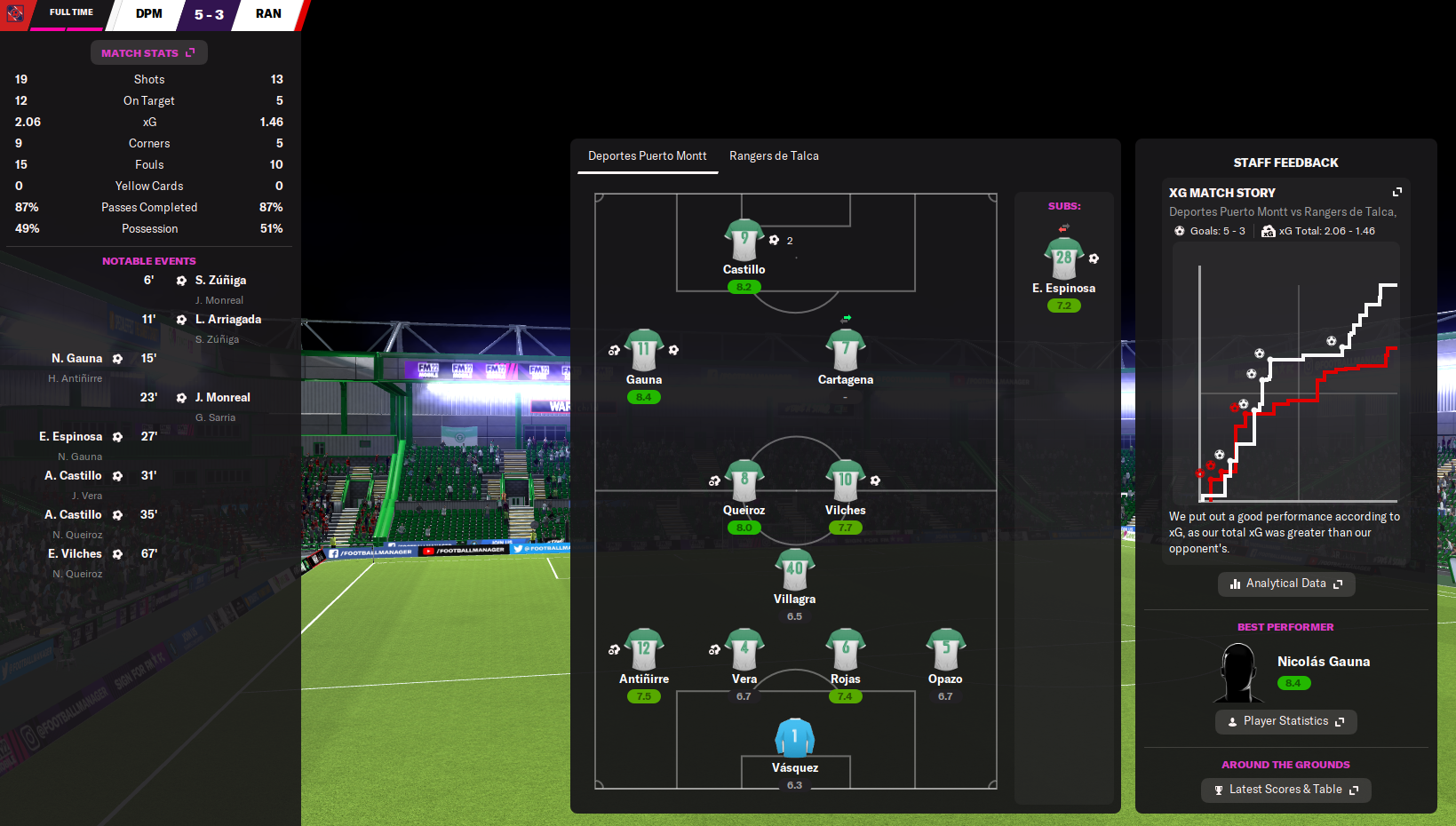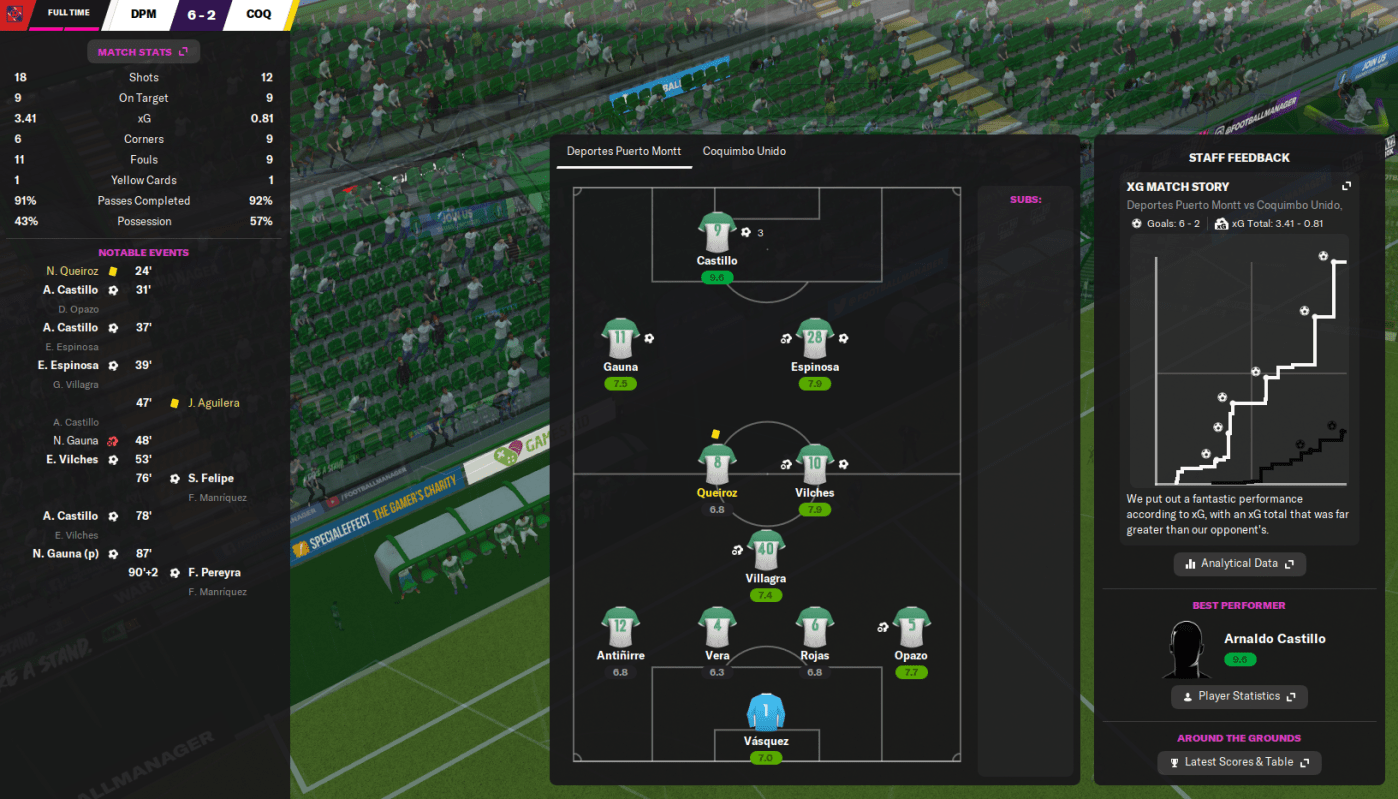 They responded in style to win another away game – that’s two in three! – against Unión San Felipe led by a Castillo brace that took him to double figures for the campaign and some magical play from Gauna. Out of nowhere, Puerto Montt were just four points off the top of the league!