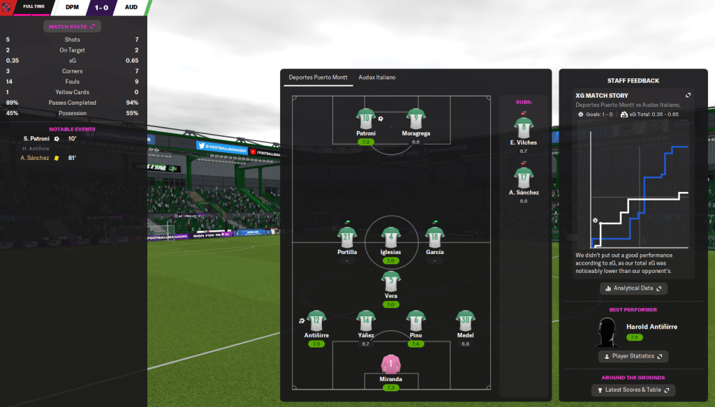 A much tougher test followed as they travelled to title favourites Colo-Colo. The hosts were lingering in eighth but were far too good and eased to a 2-0 win despite Eduardo Miranda’s heroics in goal earning him an 8.3. And the tough tests continued as they entertained the top two, starting with a 3-1 loss to Curicó Unido then a 2-0 defeat to leaders Antofagasta. And that saw Puerto Montt slump into the relegation zone.