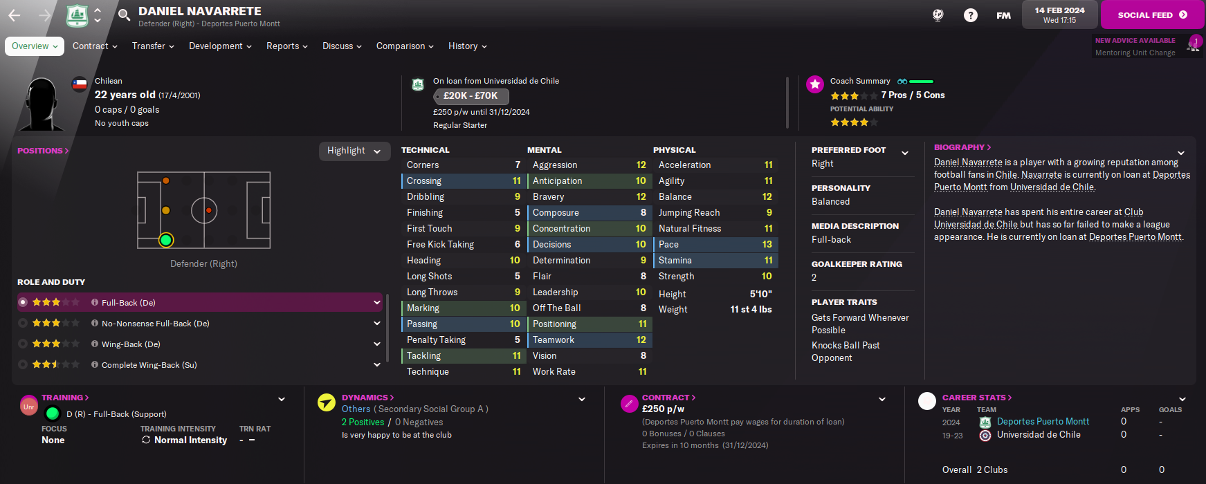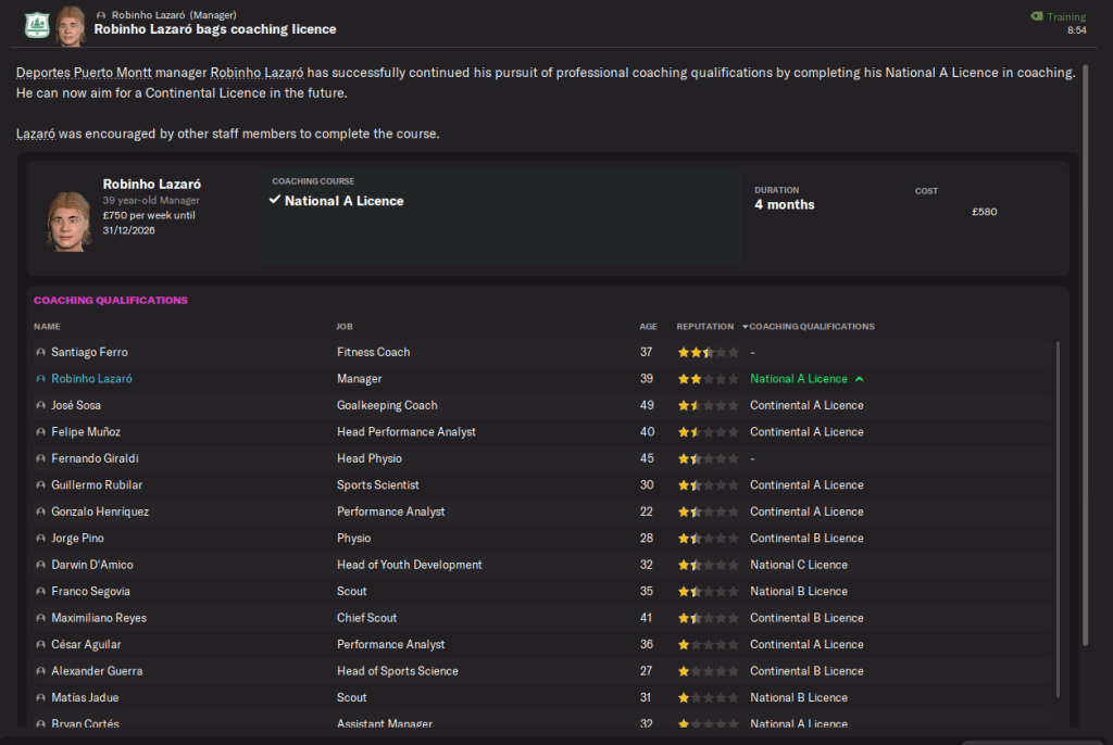 Lazaró also managed to bag his National A Licence, which saw his reputation rise to a mighty 2-stars and become the second most reputable coach at the club. However, there was, as yet, no sign of other clubs across the Americas taking an interest in his services.
