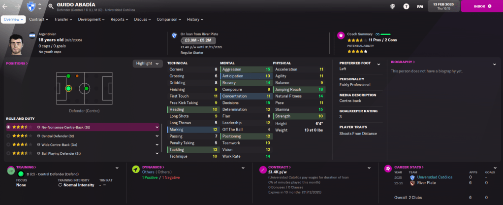 He struggled to find new players capable of strengthening but did make several centre-back signings. That started with bringing in River centre-back Guido Abadía on loan for a season, who looks like a great player. He also made his first-ever cash signing in promising 18-year-old Colombian Juan Felipe Munoz, who arrived for £250,000 from Atlético Huila. A familiar backup option arrived in Massami Yanez then promising Chilean defender Bastián Roco came in for £4,000.