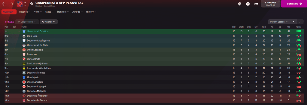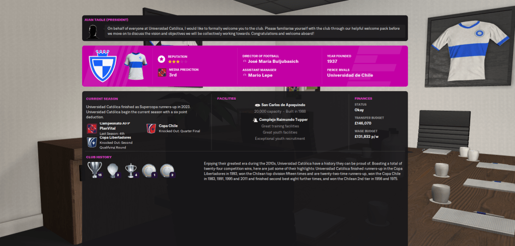 Club Deportivo Universidad Católica are 15-time champions of Chile and four-time Copa Chile winners, who’ve also twice been runners-up in Copa Libertadores. But they haven’t won the league during this save, having done so in 2018, 2019 and 2020.
