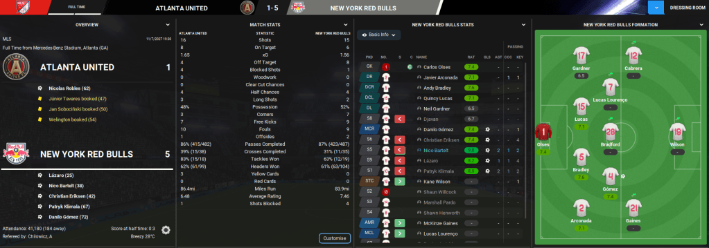 Eriksen made his Red Bulls debut at struggling Atlanta the day after he signed. And he immediately made his mark on MLS as he scored and had four key passes as his side romped Atlanta 5-1! But the star of the show was Nico Bartelt, who returned from international duty with a goal and two assists in what was easily the best performance of Lazaró’s reign.