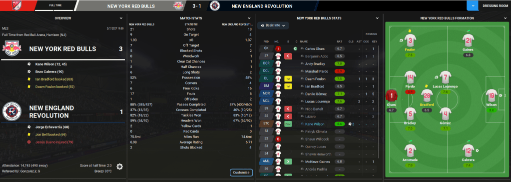 Red Bulls started the game brightly and a flowing move ended with Gómez poking the ball through for Klimala to slam home inside three minutes. The striker was sent through again by Lázaro just after the half-hour and kept his cool to beautifully chip the keeper. At half-time, they were 2-0 up, dominating by nine shots to four and with 53% possession. The second half was a dull affair until Houston got a goal back with another lovely chipped finish, but Lazaró turned all the time-wasting on and they held on for the biggest win in club history.