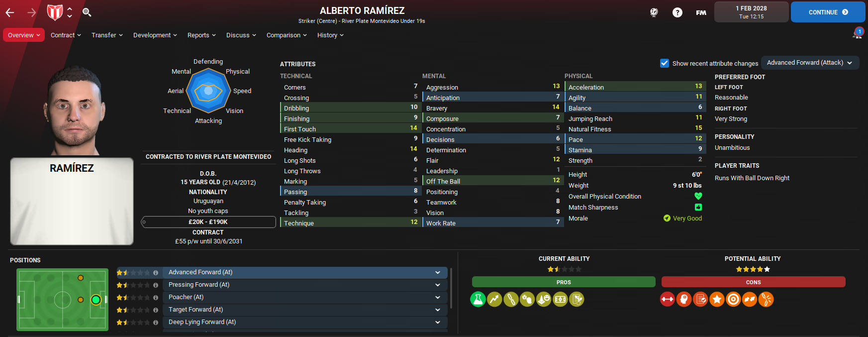 There was also plenty of exciting potential in addition to Vaz, with attacker Samuele Marino, full-back Walter Barreiro and winger Miguel Guerra all considered to be better prospects than him. That was boosted by an excellent youth intake, which strangely arrived a month before the season, that included four “elite talents and five “top talents.” The pick of those was striker Alberto Ramírez, who immediately became the best prospect at the club.