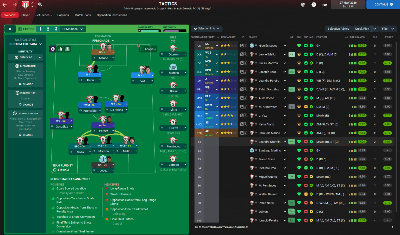 The squad has an interesting mix of players, given it’s strong at centre-back but lacks midfielders and a right-back. While a lot of trust is being placed in an untried 18-year-old striker. With that in mind, Lazaró concocted a wacky tactic that he thought might play to the squad’s strengths. Welcome to “Chaosball” or, as Lazaró called it, “la Caosbola.”