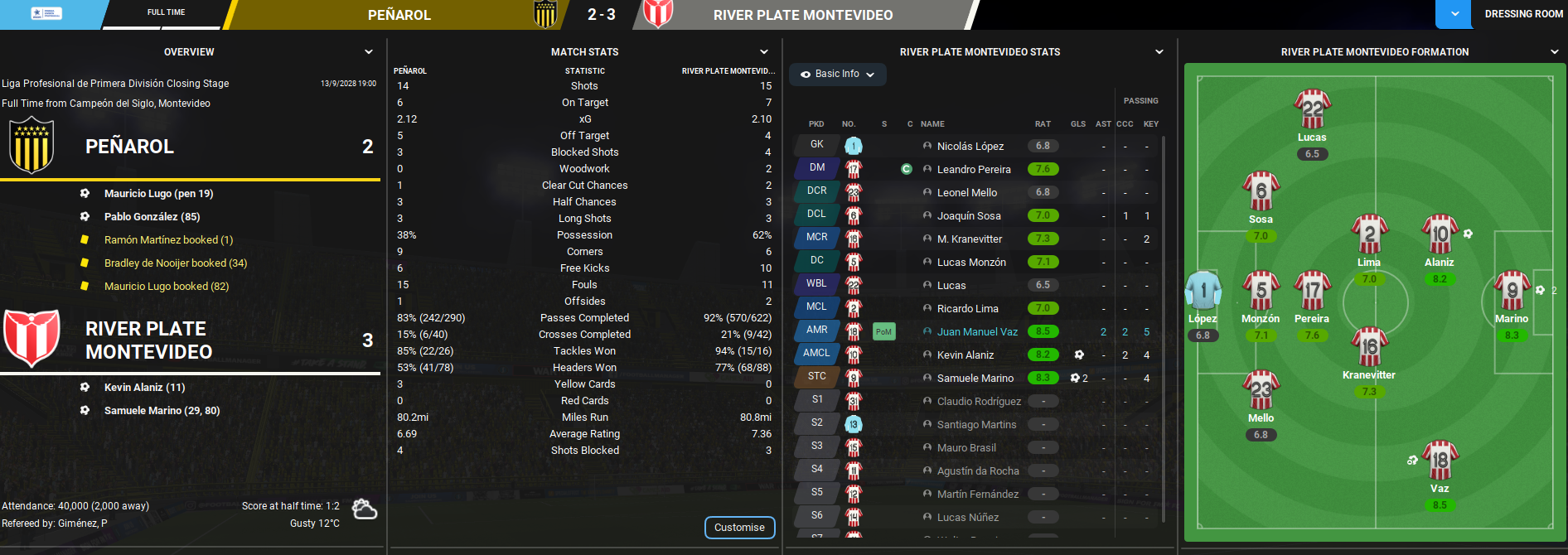 An interesting tactical gamble was working nicely as Robinho Lazaró led his River Plate Montevideo side to a third-place finish in the opening stage of the Uruguayan top-tier. However, things were about to get pretty confusing.