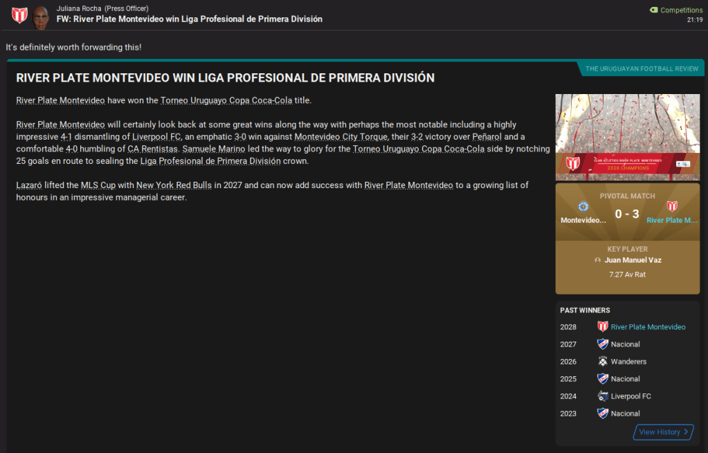 River Plate Montevideo were Champions of Uruguay for the first time in their history!!
