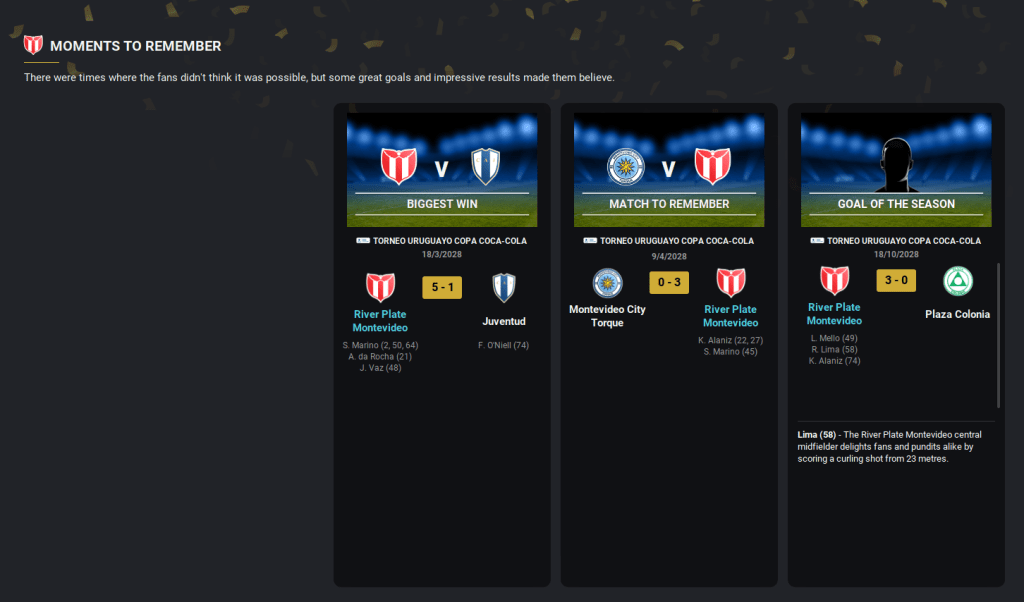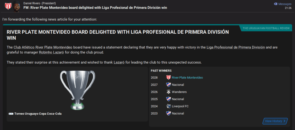 River Plate made a flying start to the big game as centre-back Lucas Monzón headed home after seven minutes. Yet again, they were second-best for most of the game but attacking midfielder Kevin Alaniz curled in a delicious free-kick to double the lead on 69 minutes. Penarol got a late consolation but they held on to win the Intermedio Final! But despite picking up a trophy, it doesn’t actually show in their trophy cabinet or as a cup win on Lazaró’s record.