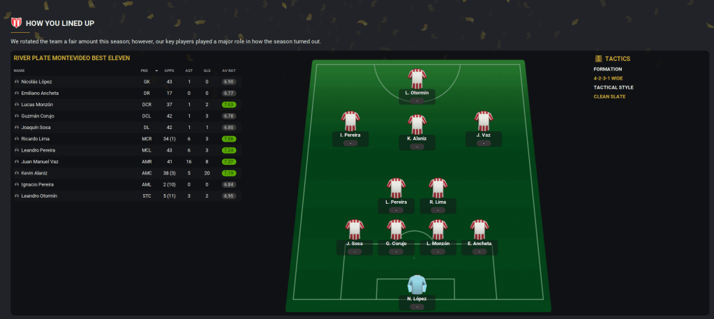 The River Plate boys were absolutely on fire with a club record-equalling 18 unbeaten since Lazaró tweaked to the more solid version of “la Caosbola.” A nervy 2-1 win over Fénix with 10 men saw them beat the club record unbeaten streak, then a 1-0 success at Cerrito smashed the club record for most wins in a season (21).