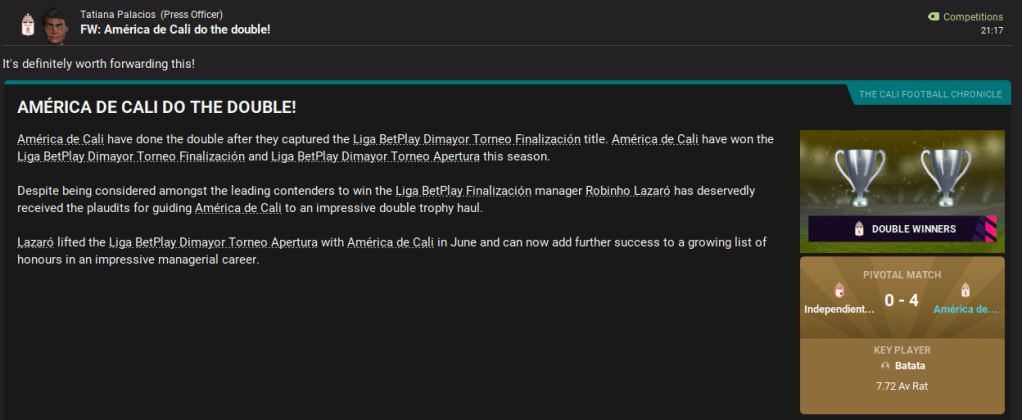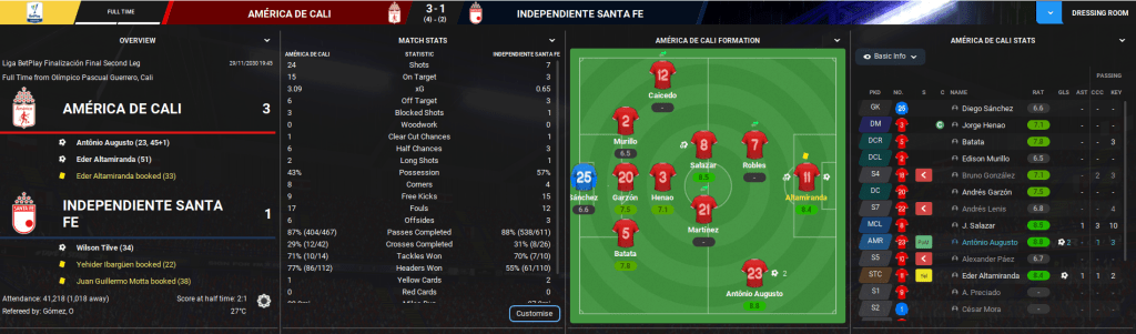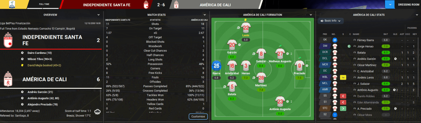 That set América up for a strong end to the campaign, including an absolute battering of Santa Fe, winning 6-2 away with both Antonio and Matheus Augusto scoring braces.