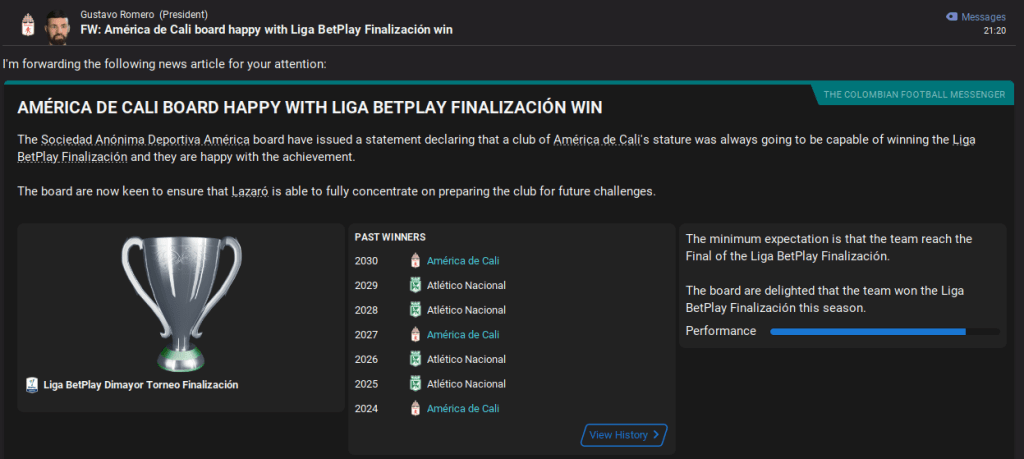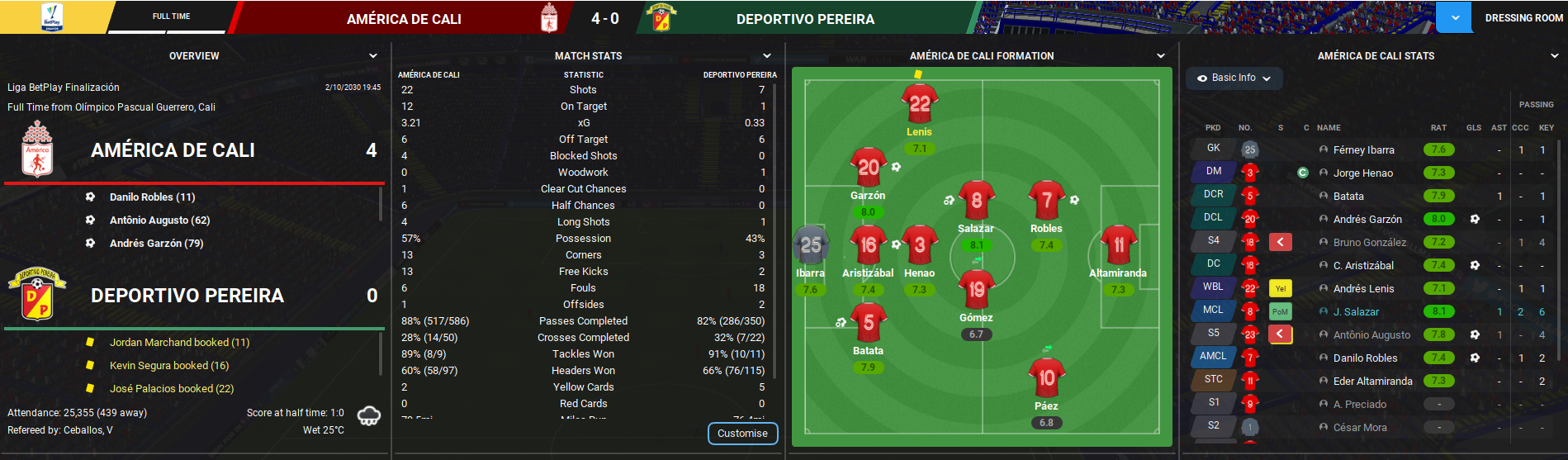 The final stage began with a 1-0 win at Envigado, despite battering them with 23 shots to five, then Páez got his first assist as striker Eder Altamiranda bagged a brace in a 2-0 win over Expreso Rojo. And the strong form continued as they went 10 games without conceding in all competitions!