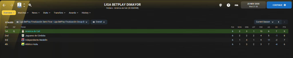 However, that was just about enough to sneak América through to the Finalizácion Final with nine points. Surprisingly, their opponent will be Independiente Santa Fe, who dominated Group E with 13 points to finish seven clear of Nacional, who sacked their manager, Millonarios and Junior FC.
