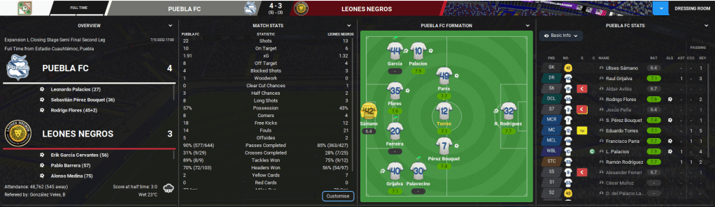 Puebla then had to navigate a two-legged knockout phase that was essentially a brand new cup competition for promotion. That began with a quarter-final against Pumas Tabasco, in which they won the away leg 2-1 then dominated the second leg but drew 1-1 to just about seal progression.