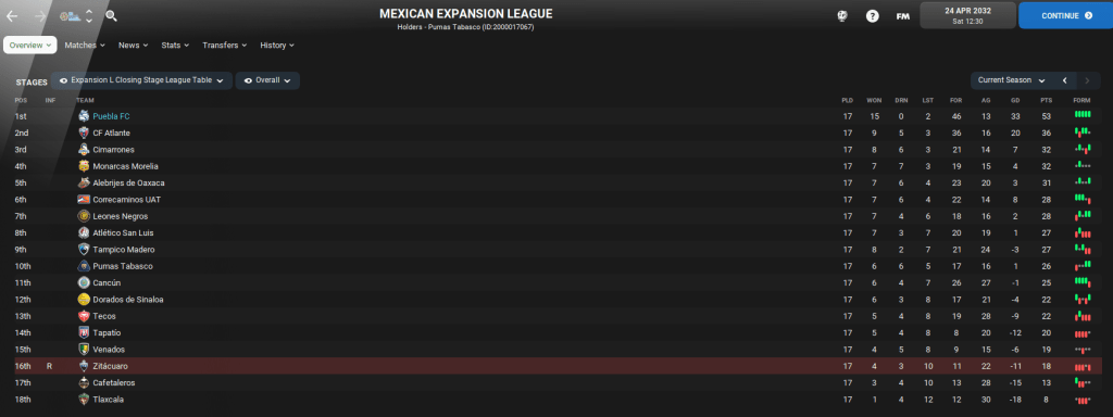 That’s because Puebla are in the second tier of Méxican football, the Expansion League, having been relegated from the top tier last season. And, despite being overwhelming favourites for the league, they only finished 11th out of 18 teams in the league’s opening stage.