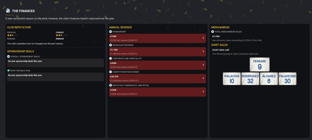 Hilariously, when the club was relegated in 1999 its owners went out and purchased the promoted team! It’s been up and down the first two tiers since then, but through this save it’s mainly been down in the Expansion League.