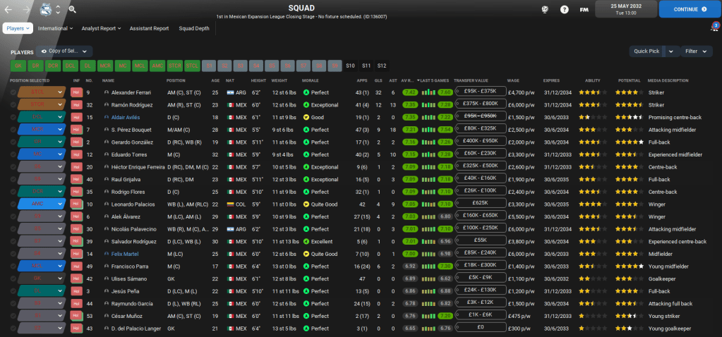 Lazaró decided to allow any unhappy players to leave and quickly rebuild the squad. He sold eight players in his first week for a profit of around £500,000 then moved to replace them with young prospects. That included exciting full-back Gerardo González for £150,000 from Raya and centre-back Héctor Enrique Ferreira for £180,000 from Pumas Tabasco. Annoyingly, halfway through the league stage, a load of MLS and Brazilian clubs moved for Rivas and he joined Athletico Paranaense for £825,000.