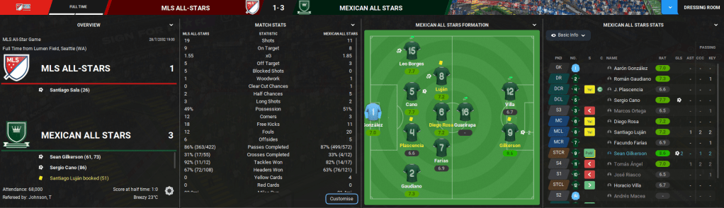 Away from Puebla, Lazaró was selected as manager for Mexican All-Stars against MLS All-Stars! He didn’t know who too many of the players were, other than Sean Gilkerson who’d been the best player in MLS when he was at NYRB and had just joined Monterrey. And Gilkerson popped up with an equaliser after an hour then put them ahead 13 minutes later before centre-back Santiago Cano wrapped up a 3-1 win. That was the Mexicans’ first win in the game in seven years and adds another cup competition to Lazaró’s trophy cabinet!