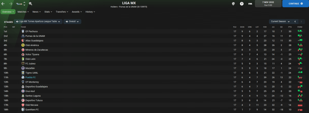 Puebla finished the Apertura with a 0-0 draw at home to Juaréz, which saw them finish the stage in 11th place – despite being in the top six until the 13th match. They were the top scorers in the league with 39 goals and had the third-worst defence with 26 conceded! Winners Pachuca only scored 17 – three of which were against Puebla – and conceded 10.