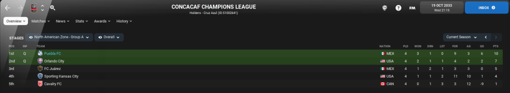 Next was a trip to Calgary and a 4-0 thumping of Cavalry, which began with screamers from Ruiz and Ricardo Páez. Attacking midfielder Páez was the hero again at Orlando as he scored just before half-time then nothing happened after the break and Puebla snuck a 1-0 win to seal qualification with a game in hand. The final game saw Ferrari return at home to Juárez and they eventually made the most of their domination with a late Rodríguez strike to win the group.