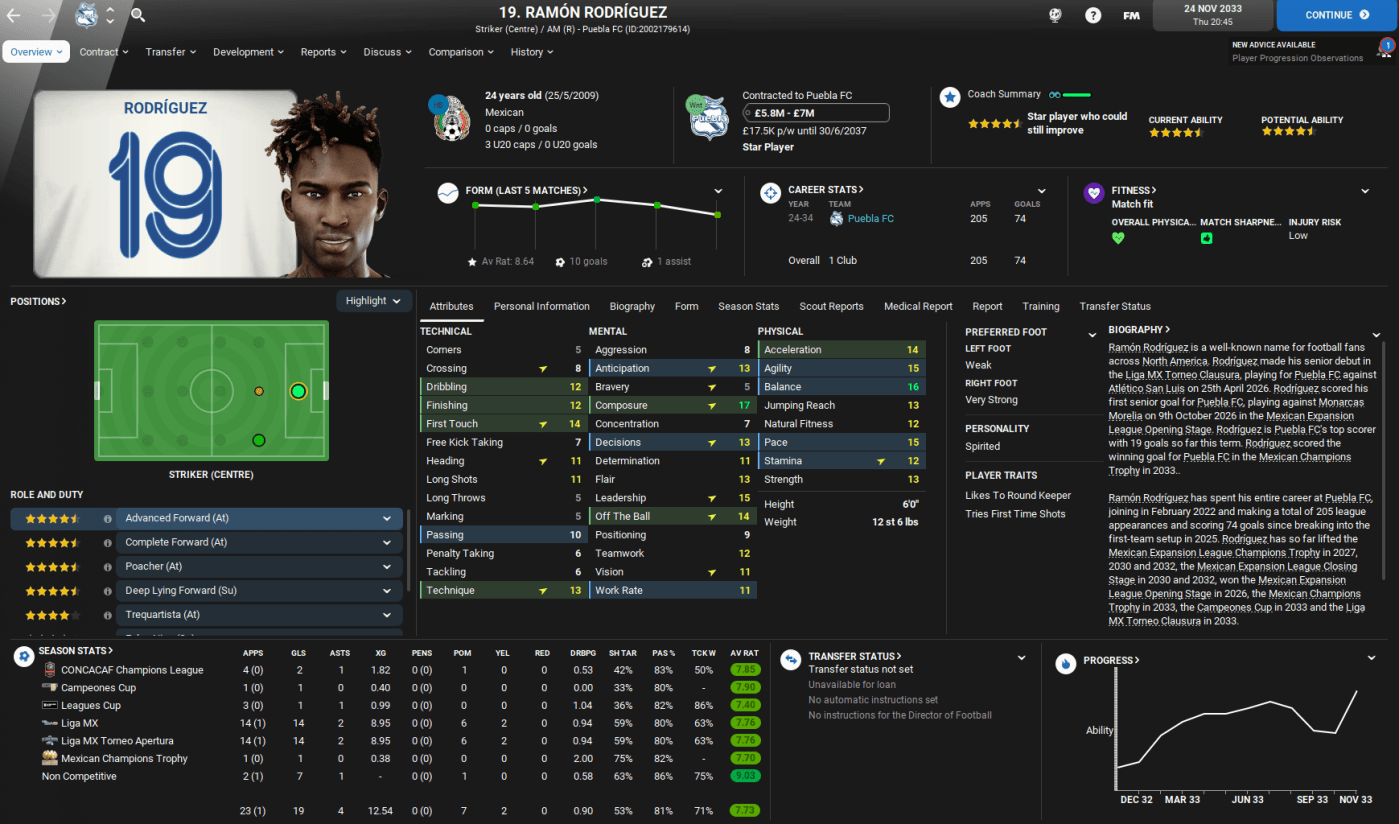 The 2033/34 campaign began with the curtain-raising Mexican Champions Trophy, which saw Clausura winners Puebla take on Apertura winners Tigres at the Cotton Bowl in Dallas. Puebla got a flyer as Rodríguez scored after five minutes and, despite being dominated, held on for a 1-0 win with ever-improving goalkeeper Daniel Aguilar making 10 saves!