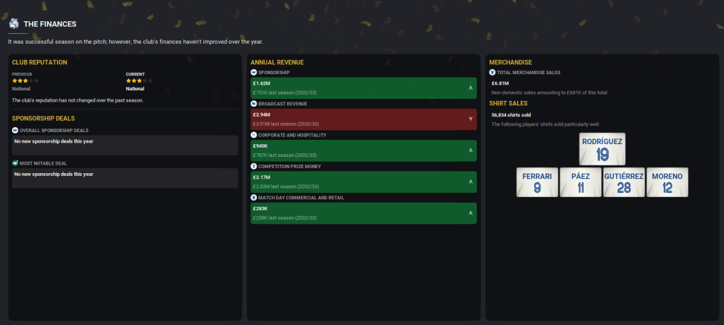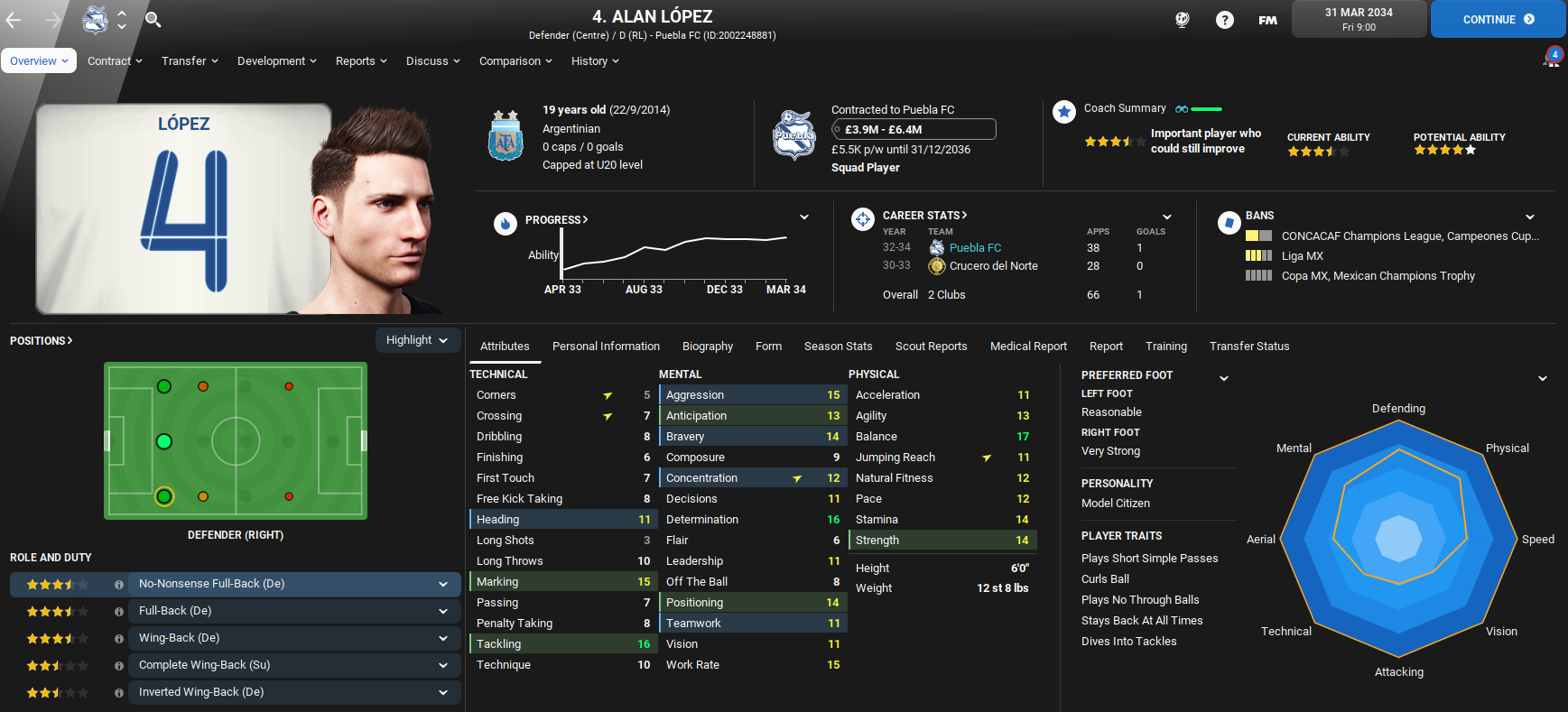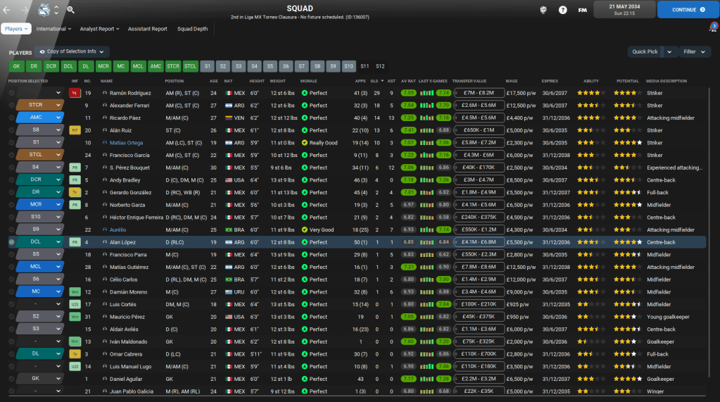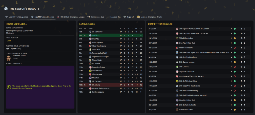 Lazaró was now more than happy to look elsewhere after a very successful time at Puebla. However, come the end of the 2033/34 campaign, there were no jobs available in his remaining targets of Argentina, Brazil and Canada and only a handful were even insecure. So, rather than leave the club and sit on the job centre door, he decided to stay at Puebla in the hope that a big job would eventually pop up.