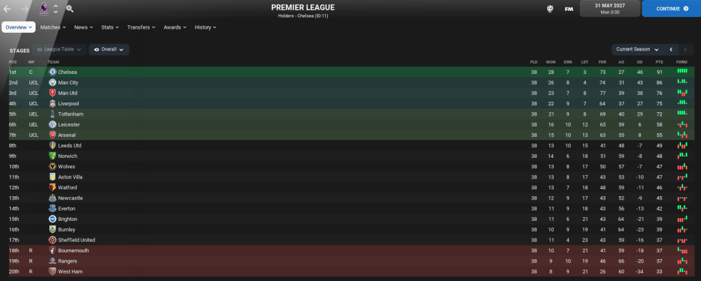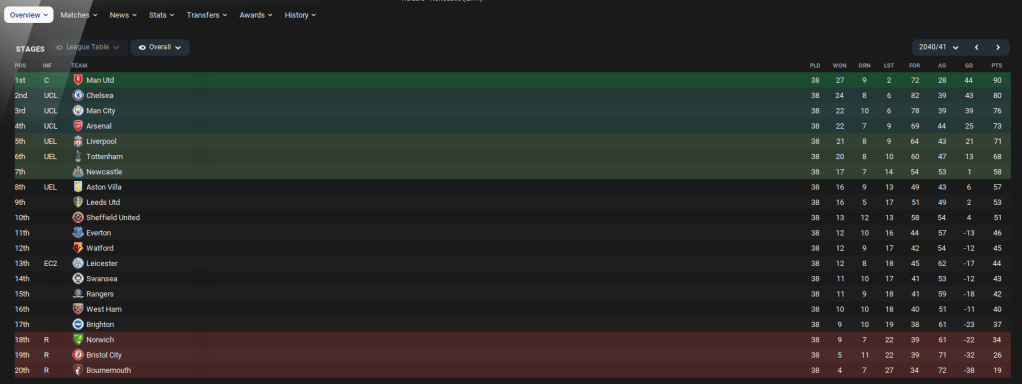 And Celtic and Rangers finished the 2053/43 season in 13th and 16th respectively. Celtic seem to have settled into mid-table mediocrity while Rangers have just about steadied the ship and become a comfortable Premier League team.