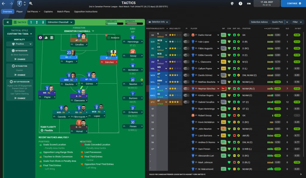 A big test of the formation came with a trip to reigning champions York United and it didn’t go well as they lost 1-0 and created nothing. Third-place Valour then came to town and Neymar scored two more on his return from suspension. 16-year-old striker Ryan Hemmings also scored his first senior goal and became the club’s youngest ever goalscorer in a dominant 4-0 win that took them top of the league.