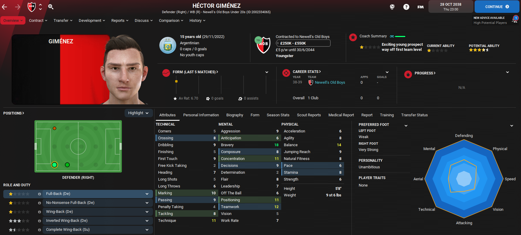 Newell’s Old Boys enjoyed a new manager bounce in the second half of the 2037/38 campaign under Robinho Lazaró, who led his new club into the top six of the Argentinian second tier. But their performances were overshadowed by financial ruin with a bank balance of minus £5 million and £15 million of debt that won’t be paid off until 2053 (15 years away).
