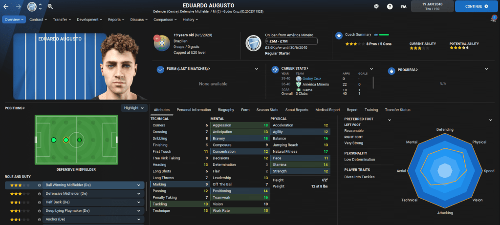 As the clock ticked over into 2040, Godoy Cruz were outperforming expectations in second place in Liga Profesional de Fútbol. That meant the Argentinian title – the only top-tier division eluding Robinho Lazaró on his Aventuras Américas journey – was a possibility in the first year of the new decade.