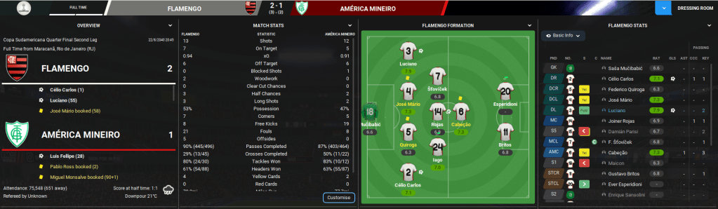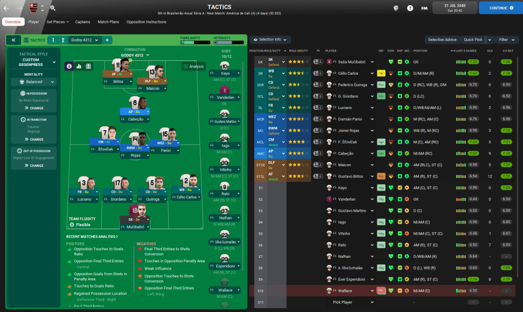 The best player at Flamengo is Czech midfielder Frantisek Stovicek, whose attributes look outrageous, along with right-back/winger Célio Carlos, who Lazaró had been eyeing up when he was at Palmeiras. Other key players include defender José Mário, right-back Federico Quiroga, midfielder Joiner Rojas, strikers Maicon and Gustavo Britos, midfielder Damián Parisi and Serbian goalkeeper Sasa Mucibabic.