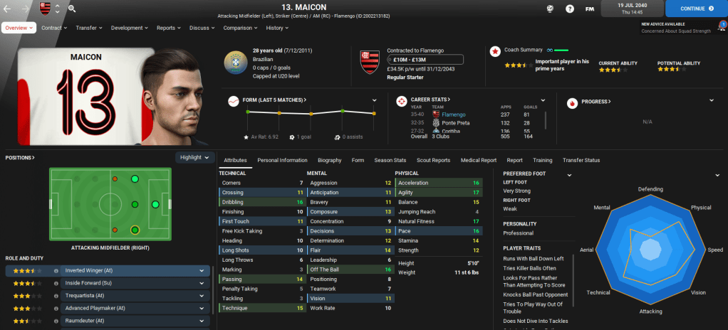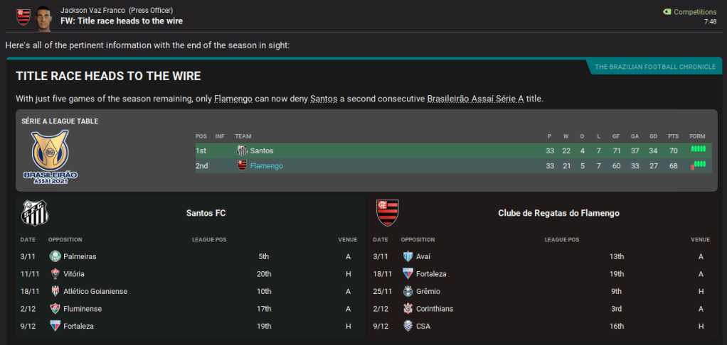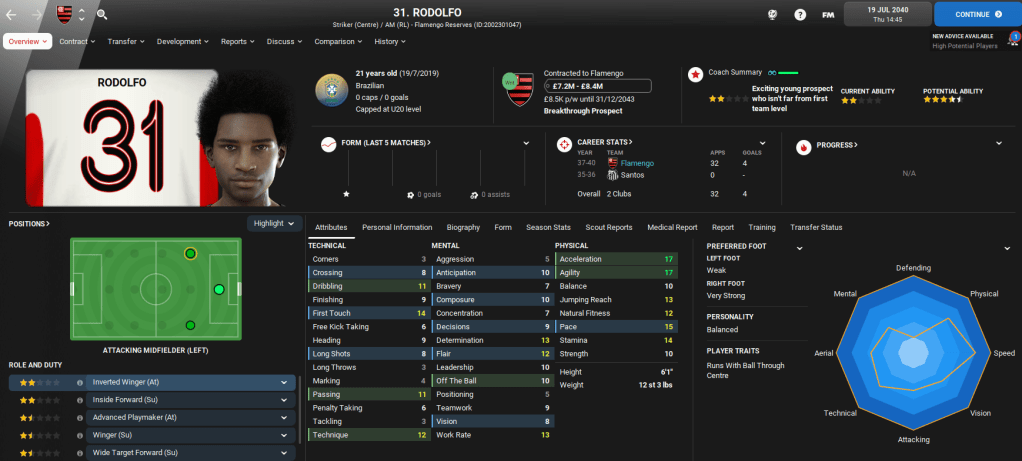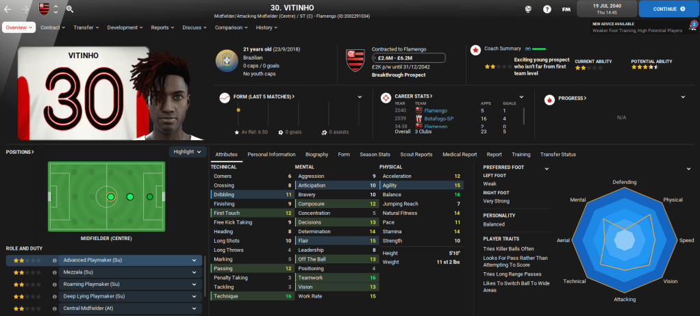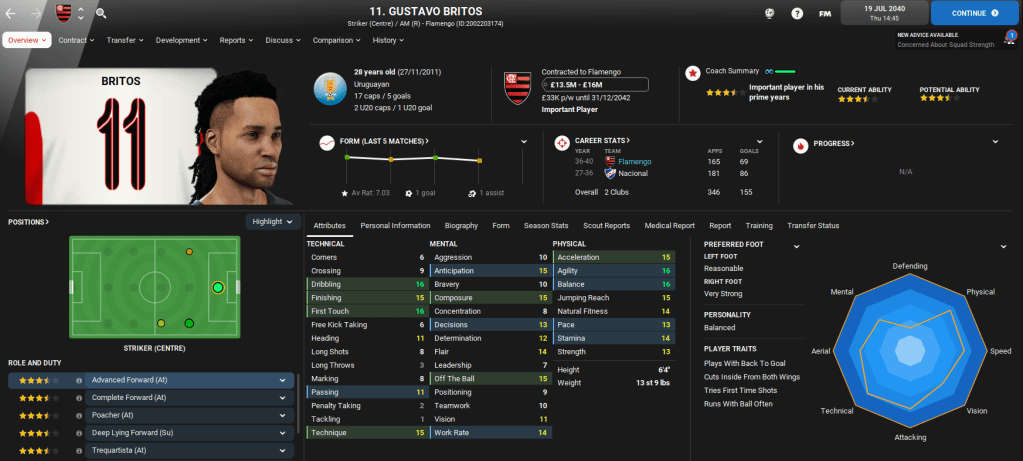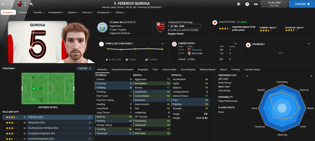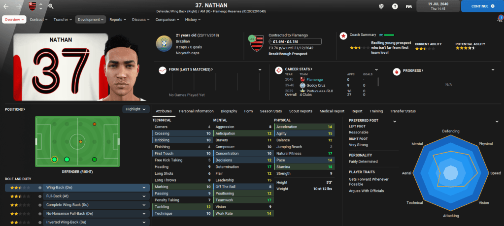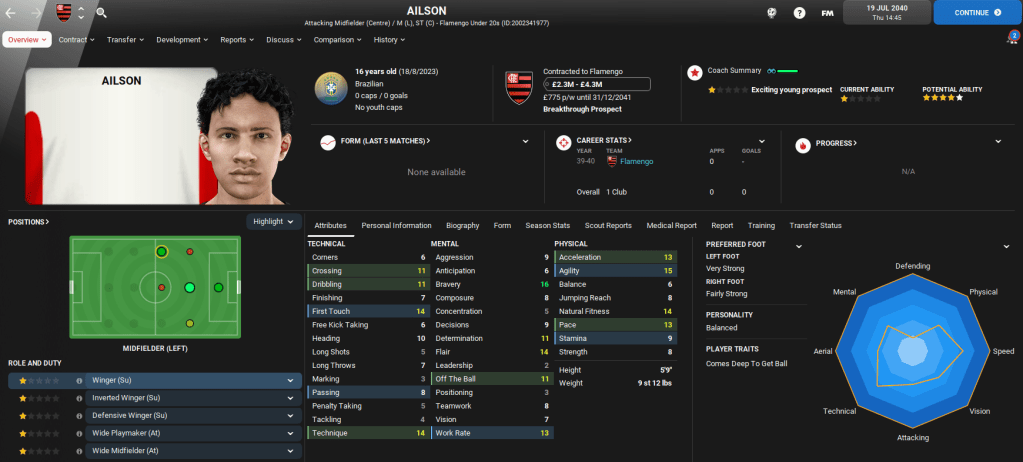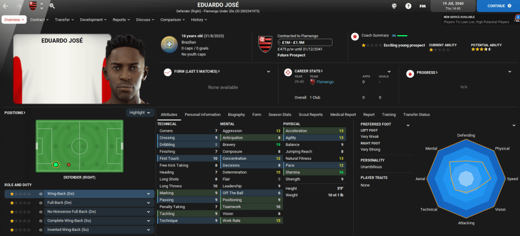 Away from domestic matters, Lazaró was also offered the ultimate Football Manager opportunity as Brazil came calling following a poor Copa America campaign. The national team offered him £42,000-per-week, which was six times greater than his wage at Flamengo. The new role will see Lazaró double up on domestic and international duties, so we’ll cover the Brazil job in separate blogs.