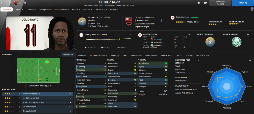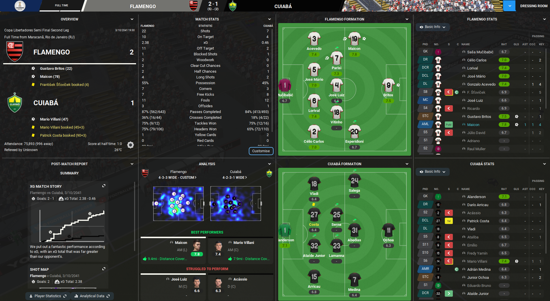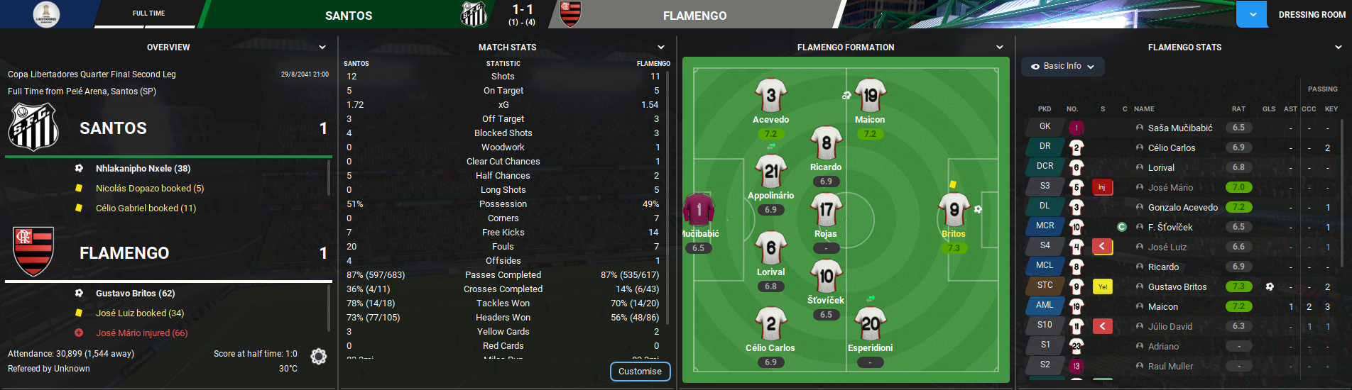 Flamengo last won South America’s biggest prize back in 2019. During this save, they’ve reached the final four times and lost to other Brazilian teams every time – with the most recent in 2033 against Corinthians. Now, on 23 November 2041, they faced another as they took on Internacional, who haven’t been in the final since they won it in 2010 and are ninth in Série A, at Estadio Centenario in Montevideo, Uruguay.