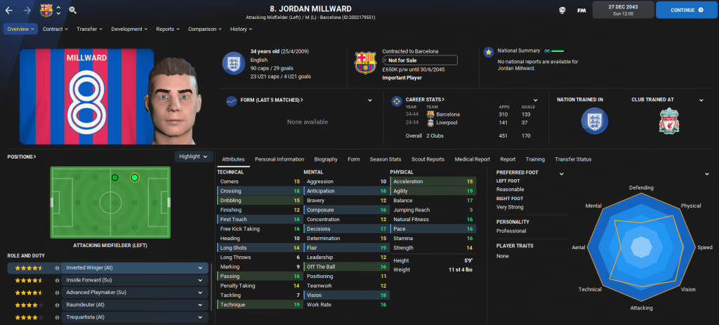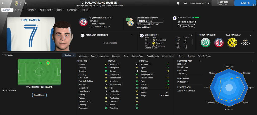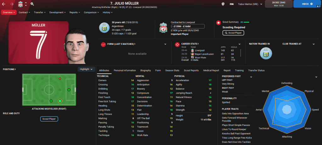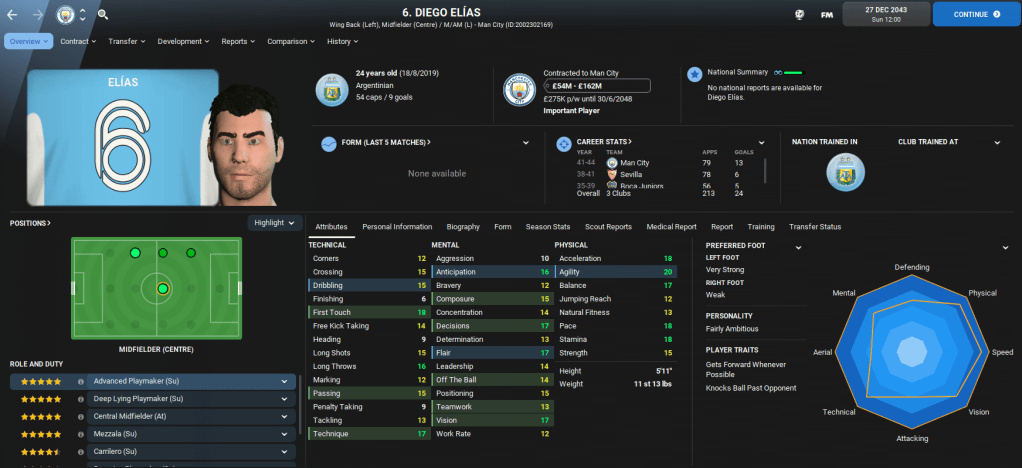 Palmeiras: Bizarrely, Palmeiras offered Lazaró the opportunity to move back to the club in September 2043, which tells you they’re not doing too well. Also, both Santos and Gremio offered Lazaró interviews that he turned down early in 2044. Palmeiras eventually finished ninth and haven’t won the title since Lazaró’s 2036 success. Although they did finish second in 2038 and 11th in 2039. As a result, they’ve been through seven permanent managers in seven years since Lazaró’s departure!