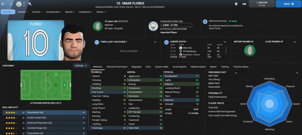 Puebla FC: Puebla finished 10th of 18 teams in México’s Apertura table in 2043. Since Lazaró left in 2034, Puebla have consolidated themselves as a mid-table side, never finishing higher than sixth. However, they did move into the massive 110,180-capacity Puebla FC Stadium seven years ago!