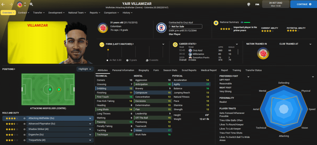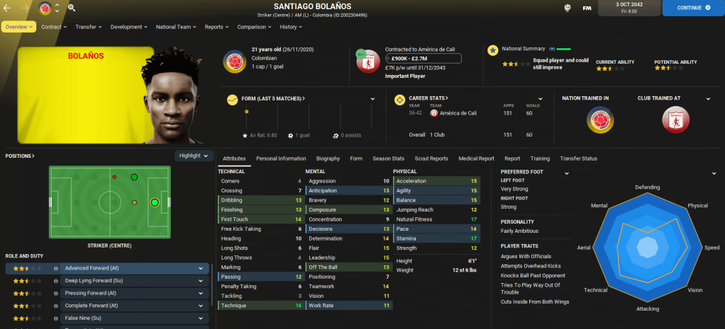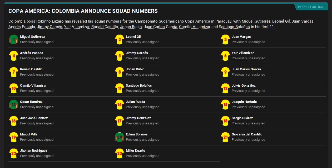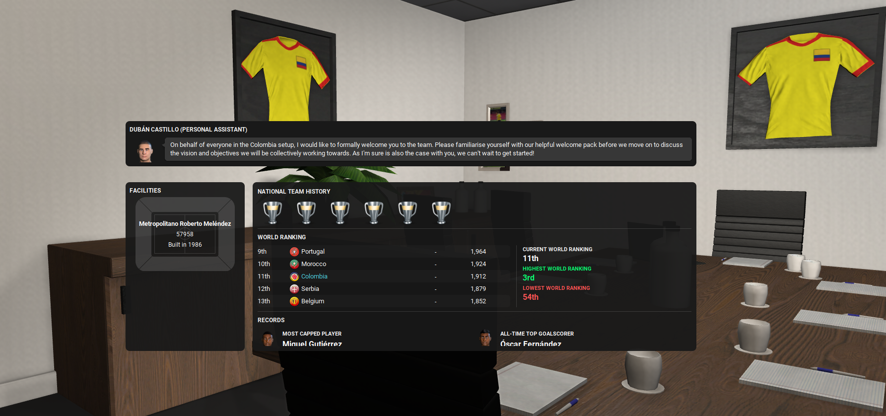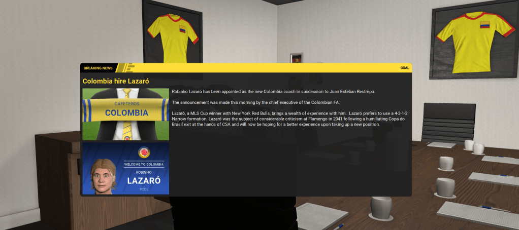 In somewhat of a surprising move, Robinho Lazaró stepped down as manager of newly crowned World Champions Brazil and headed back to his home nation Colombia in August 2042. Lazaró’s new and sole remaining objective on his Aventuras Américas journey was to try and win Copa America, so when Colombia came calling he thought this would represent a fun new challenge.