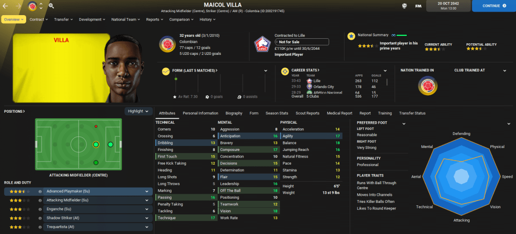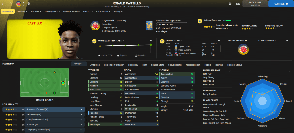 The best Colombian player in 2042 is probably Liverpool midfielder Johan Rubio, who’s scored 17 in 69 caps for his country. Pushing him close are exciting 22-year-old Benfica defender Leonel Gil and Jhohan Rodríguez, who just moved to Atlético from Corinthians.