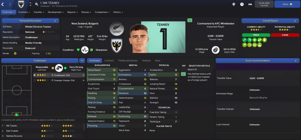 The man responsible for leading the new Crazy Gang is my alter-ego Trebor Mahtal, who’s renowned for being a strict disciplinarian. The board expects us to sign players based in England, from the lower levels of the domestic game and develop players from its youth system. They also want attacking, direct football, to make the most of set-pieces, and to avoid a relegation battle in season 1. While the media expect Wimbledon to finish 15th out of 24 teams in League One.