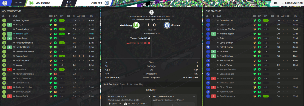 A much tougher test followed against Chelsea, but they earned a creditable 1-1 at Stamford Bridge. Wolfsburg dominated the home leg and got their reward as centre-back Youssef Joly headed home the only goal from a Dutra corner.