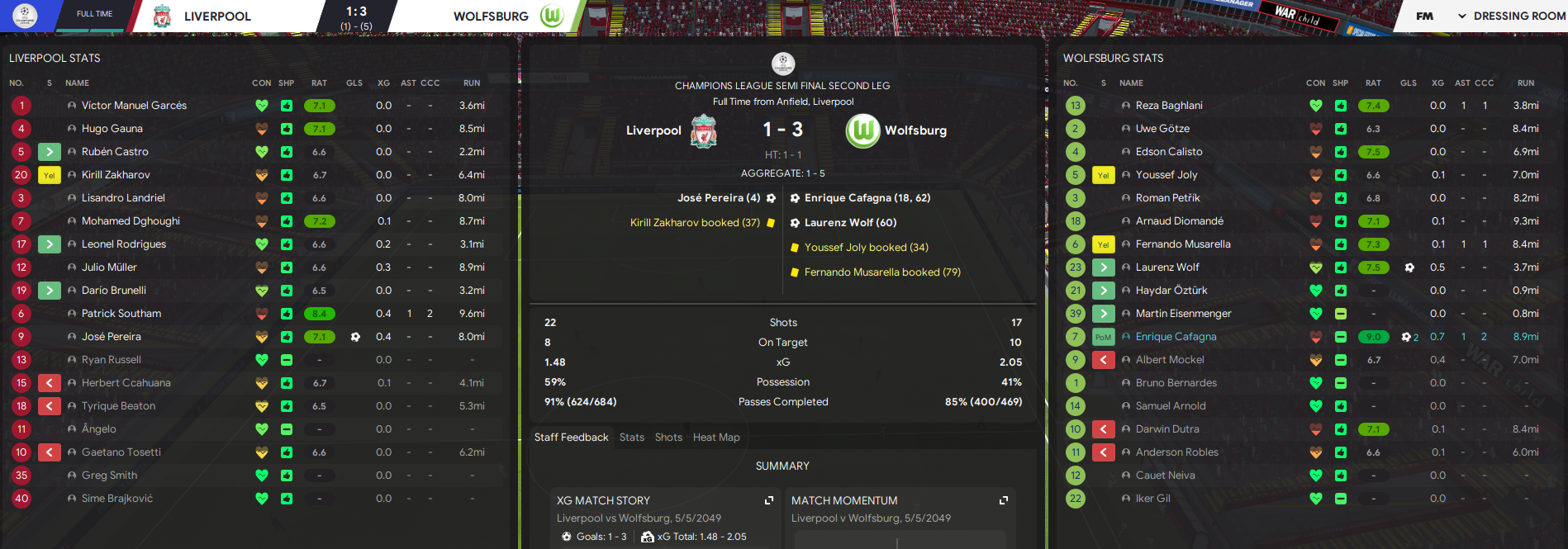 Liverpool took an early lead at Anfield but Cafagna nodded home an equaliser then laid on a goal for midfielder Laurenz Wolf and added his second to wrap up a comfortable 5-1 aggregate success. Wolfsburg were going to the Champions League Final!