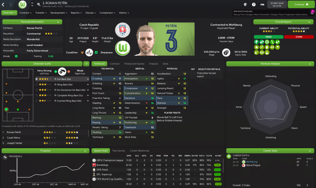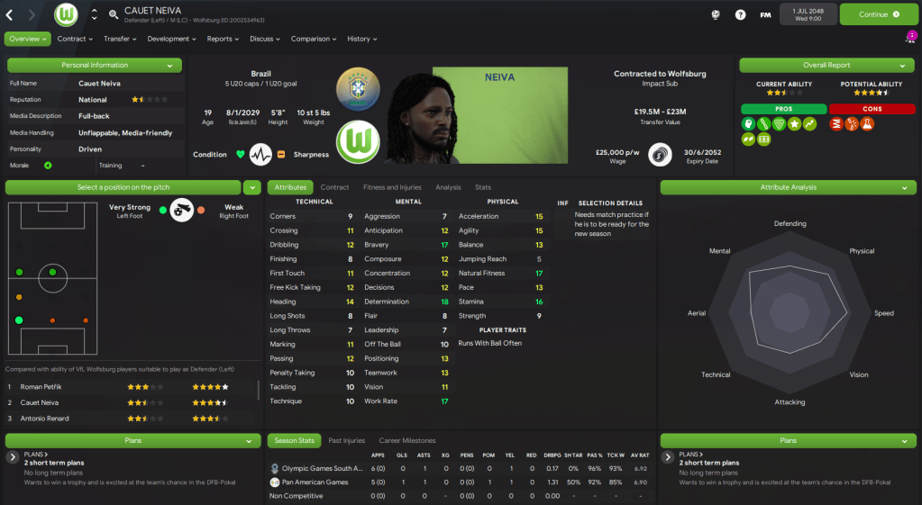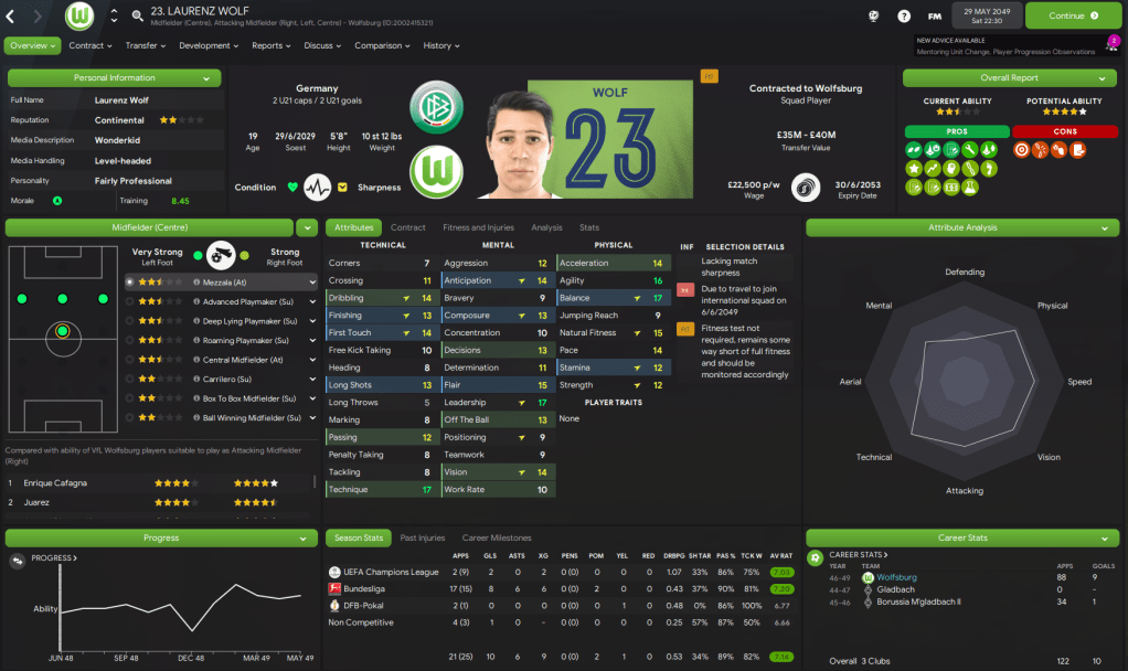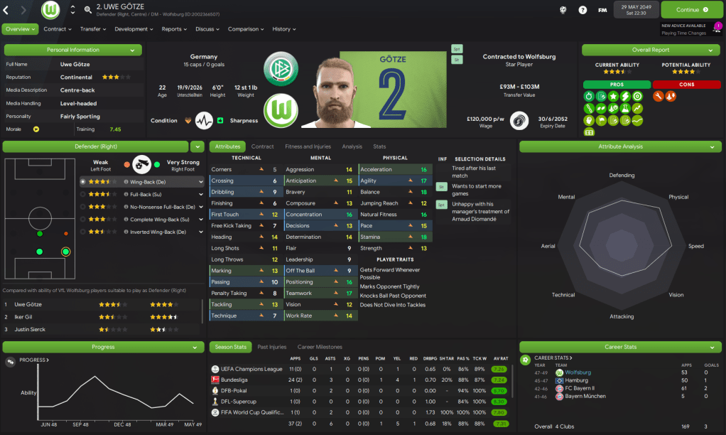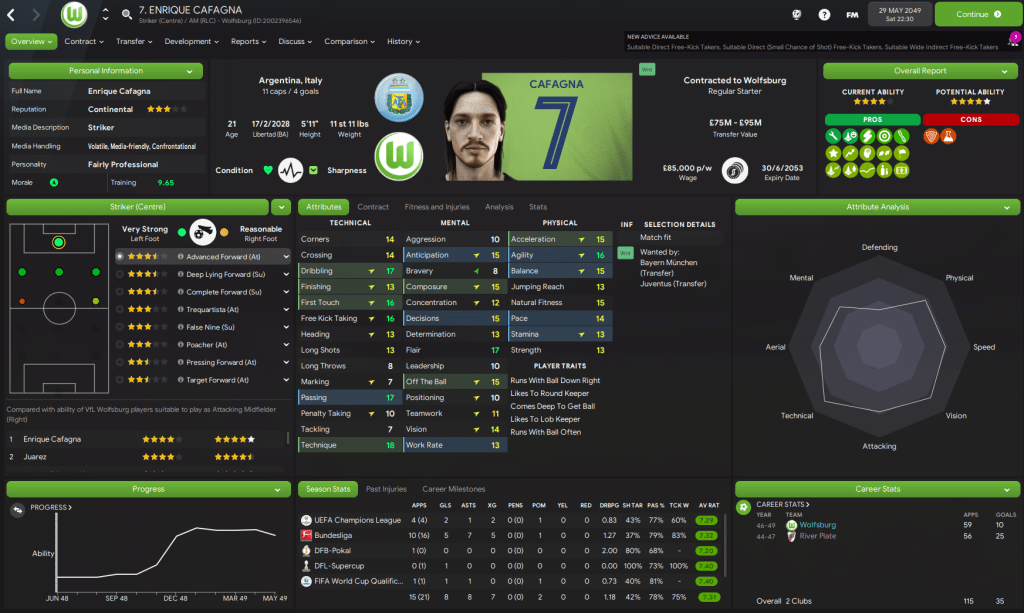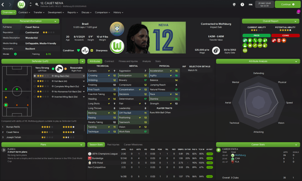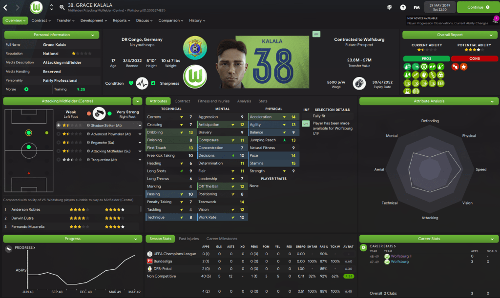 A thrilling campaign saw VfL Wolfsburg become German champions for the first time in 39 years in 2048. Robinho Lazaró’s young side had achieved great things but the Colombian manager believed there was much more to come from this talented squad.