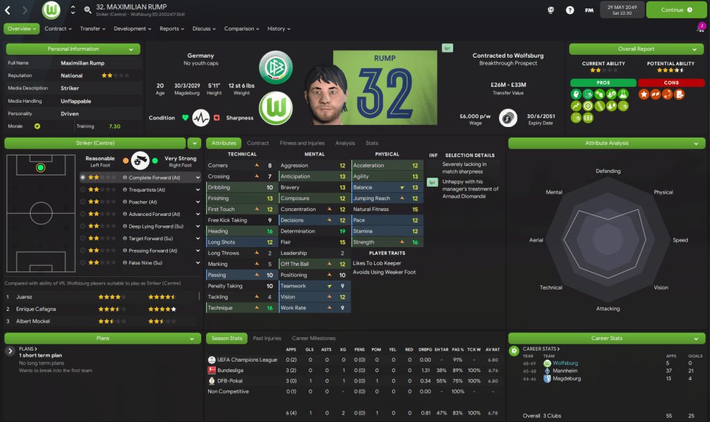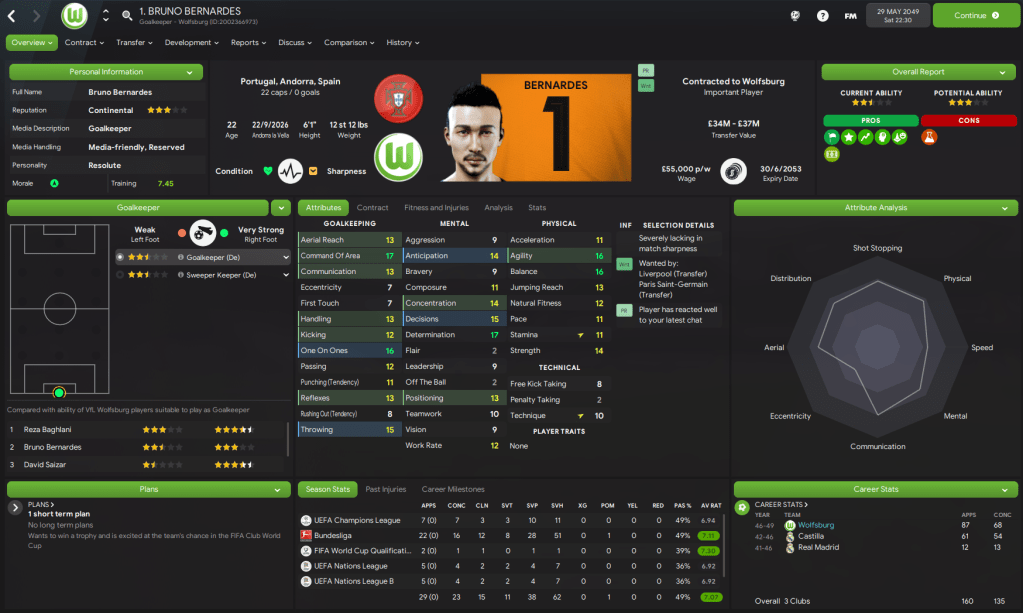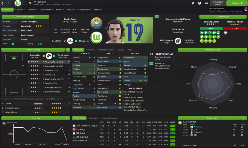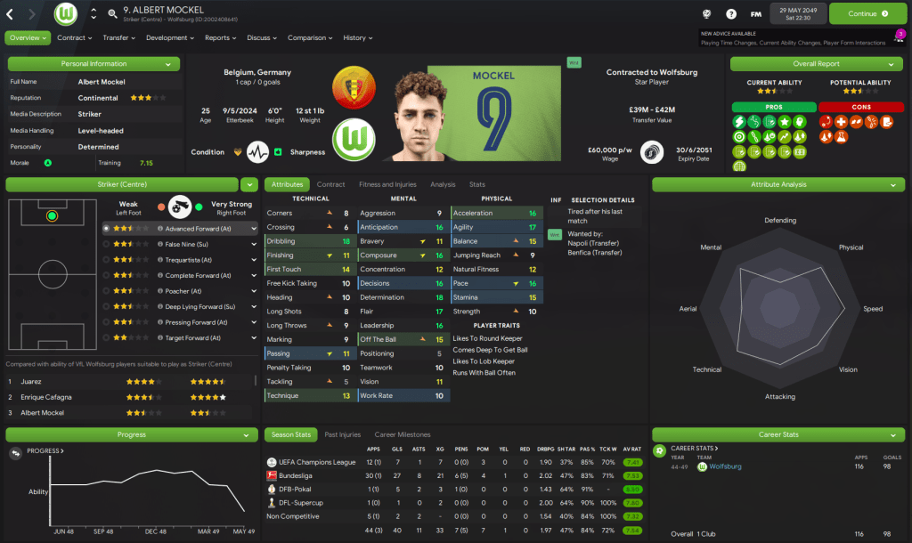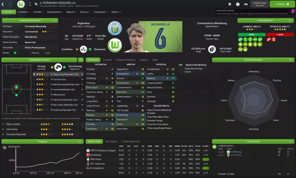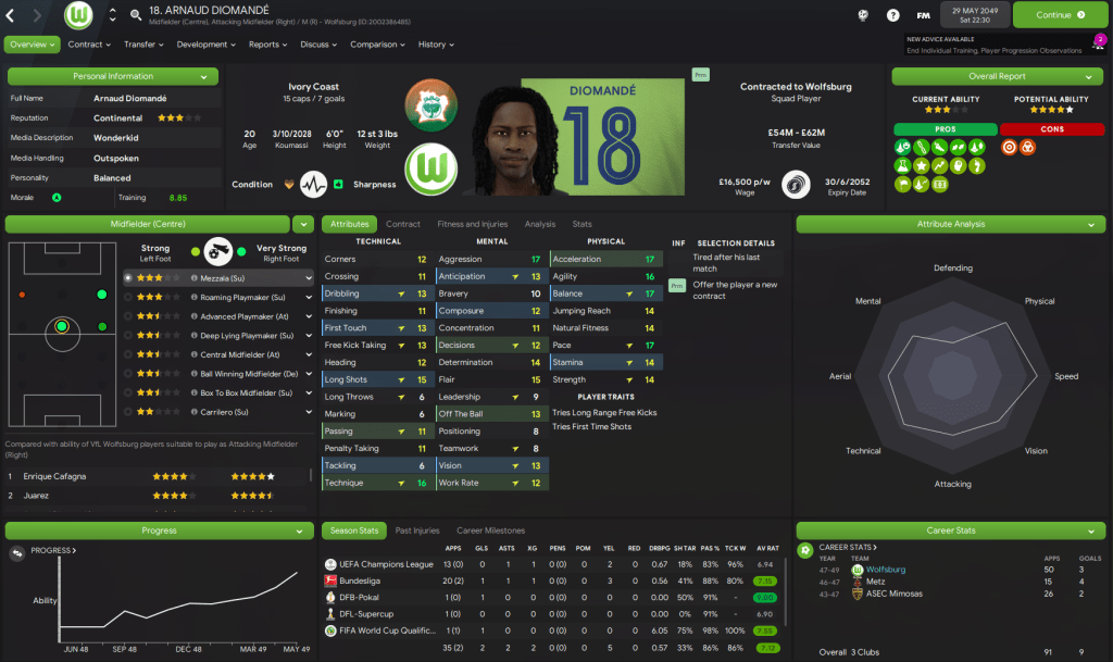 A thrilling campaign saw VfL Wolfsburg become German champions for the first time in 39 years in 2048. Robinho Lazaró’s young side had achieved great things but the Colombian manager believed there was much more to come from this talented squad.