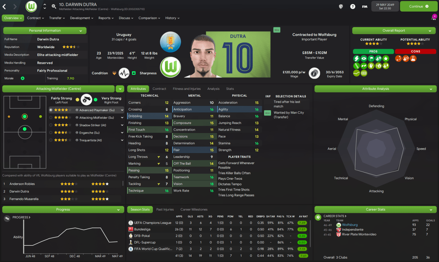A thrilling campaign saw VfL Wolfsburg become German champions for the first time in 39 years in 2048. Robinho Lazaró’s young side had achieved great things but the Colombian manager believed there was much more to come from this talented squad.