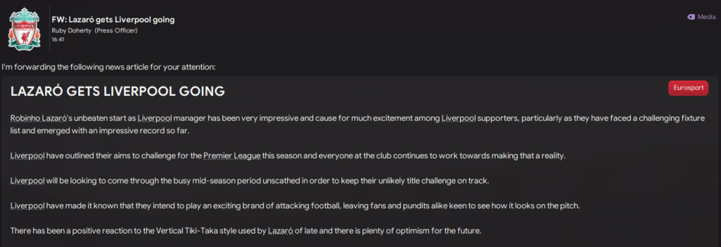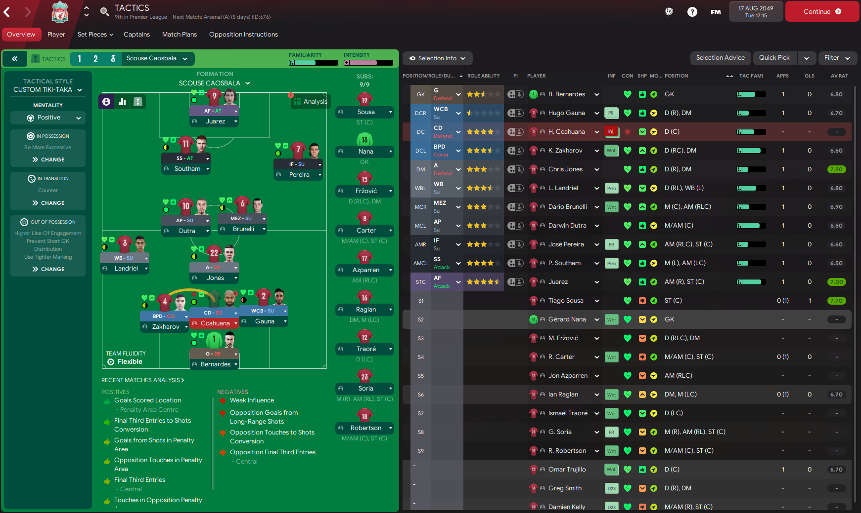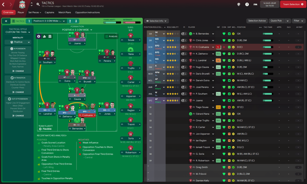 With those deals done and dusted, it looked like the most suitable approach could be the classic 4-3-3 that Liverpool currently use in real life. However, Lazaró also saw potential for his infamous La Caosbala tactic to work with the players available to him and if that didn’t work out, which was more than likely, a more attacking 4-2-3-1.
