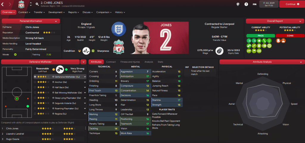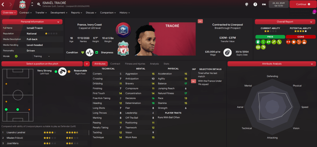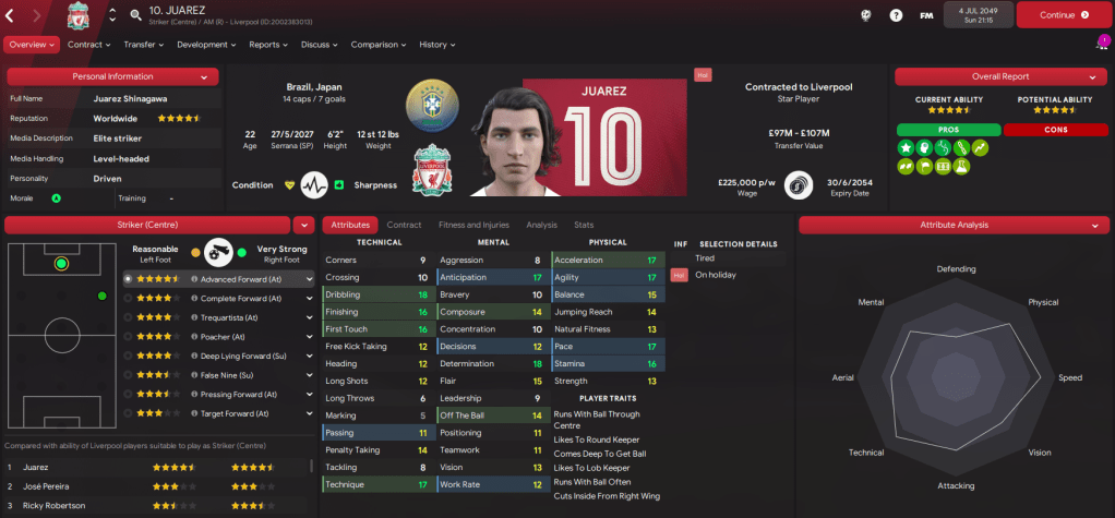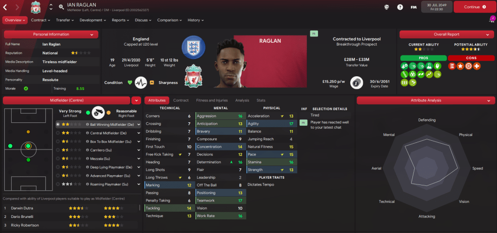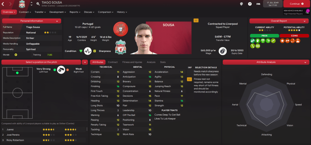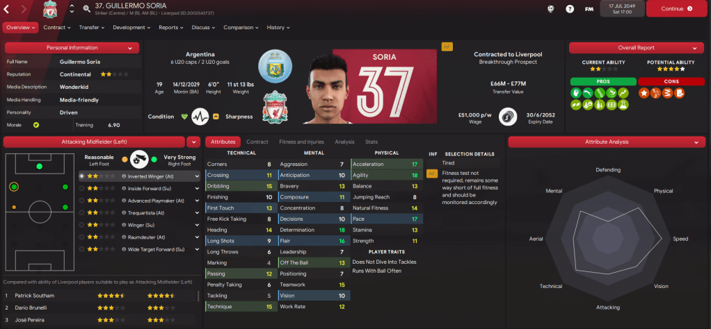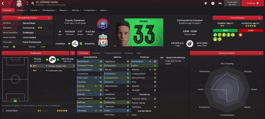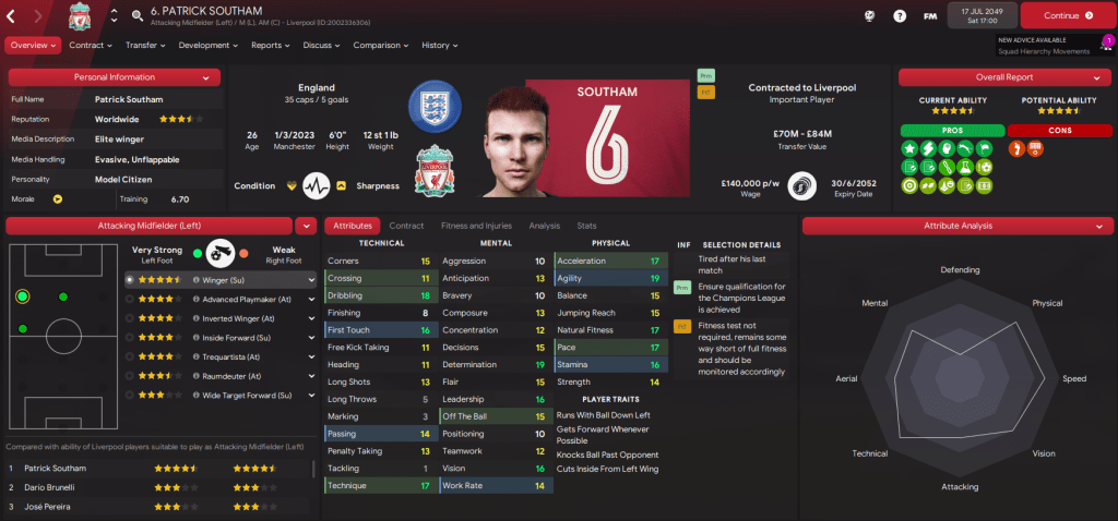 The best player remaining at Liverpool was homegrown elite left-winger and club captain Patrick Southam. Other strong options include Argentinian full-backs Hugo Gauna and Lisandro Landriel, English right-back/holding midfielder Chris Jones and centre-backs Herbert Ccahuana and Kirill Zakharov. While the best prospects are exiting wingers Guillermo Soria and Jon Azparren and goalkeeper Gérard Nana. There’s also strong English talent coming through in midfielders Richard Carter and Ian Raglan and 17-year-old Welsh winger Owain Harvey.