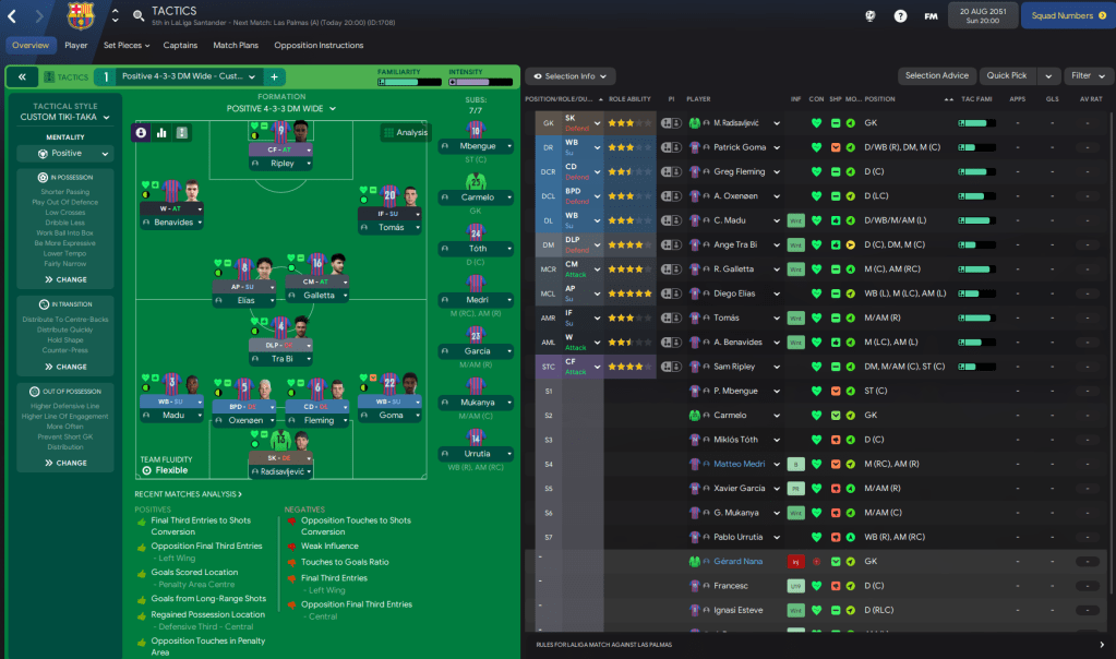 Lazaró decided to adopt the customary Barcelona tiki-taka approach using a standard 4-3-3 tactic.