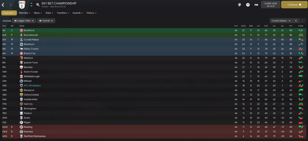 Our form went up and down, including an 8-game winless streak before hammering Forest 3-0, with Cadogan scoring again, then a 4-1 victory at bottom side Swansea. The season concluded by losing at Hull then a 3-1 win over playoff-bound Bristol City thanks to Jones and a Deeney brace.