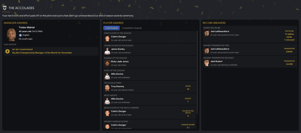 That saw the lads really pick up form heading into Christmas, including Deeney scoring twice in another great 4-2 win over Millwall. That form led to my first-ever Manager of the Month award and Devine winning Player of the Month in December 2025. And we took that into 2025 as Rudoni’s late winner downed 4th-place Blackburn 1-0 on New Year’s Day.