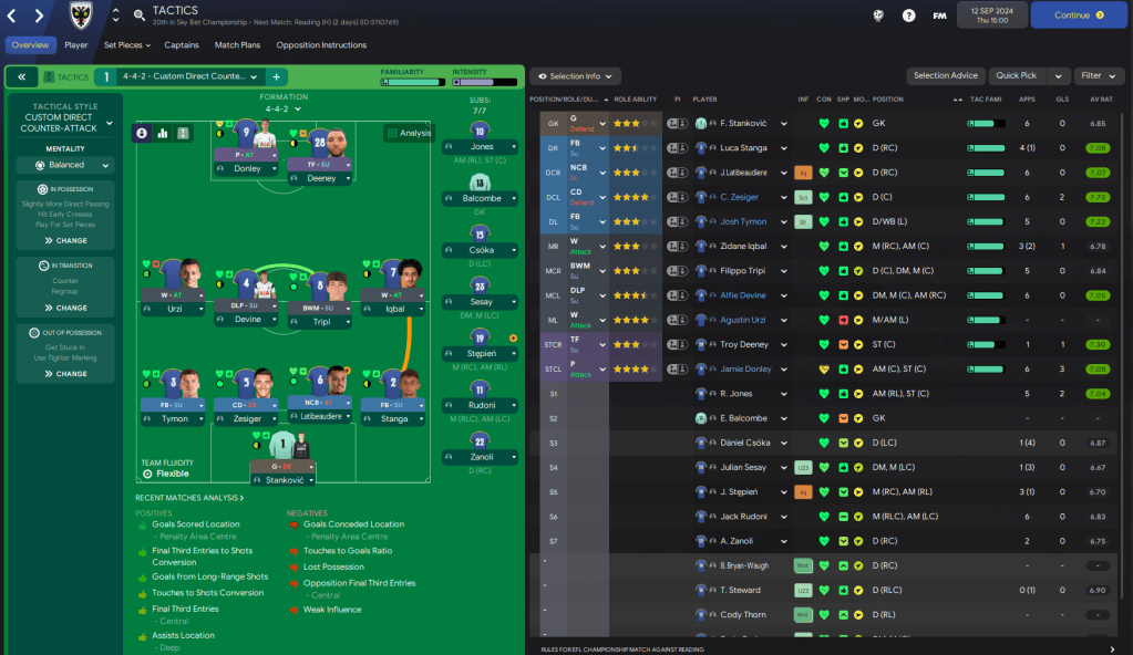 With those additions, I slightly tweaked the 4-4-fucking2 to change the right-sided striker’s role to a target forward to better fit Deeney into the side. And it looks like this:
