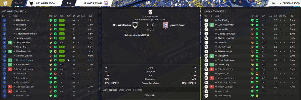 Sankoh was the hero in our first away game as his 86th-minute strike downed Ipswich 1-0. And we kept the unbeaten start going with a 1-1 draw at home to Brentford, whose entire 24-man squad earns more than our highest earner, and a 1-0 win at Middlesbrough thanks to Passant. And that won me August Manager of the Month.
