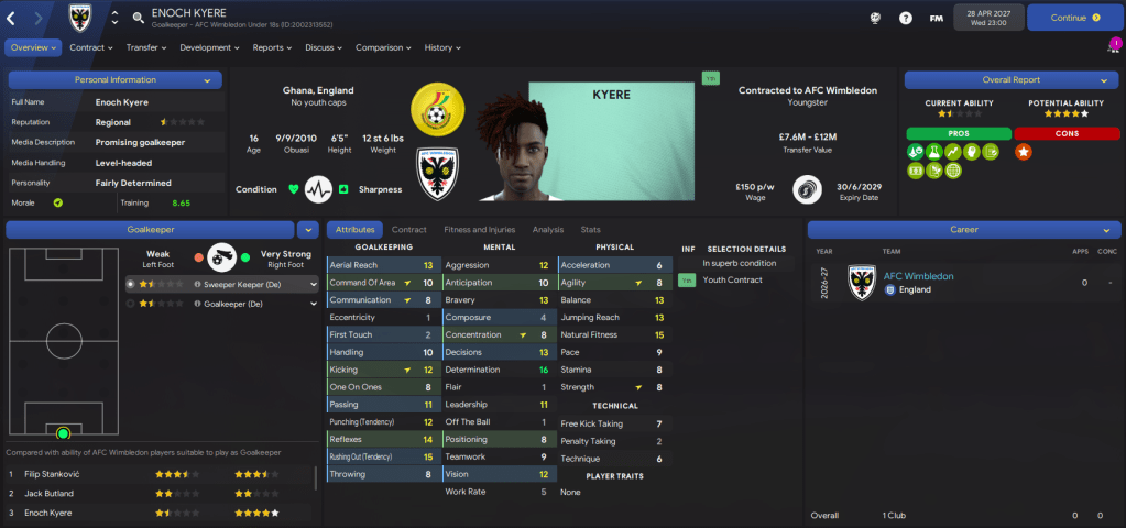 The board again committed to the future of the club by investing £6 million into new training and youth facilities, which will complete early next season, and raised the youth rating to Category 2. And they spent another £4.7 million to further extend Plough Lane to a 20,000-capacity. That was coupled with another strong youth intake led by exciting goalkeeper Enoch Kyere, striker Jimmy Black, winger Steve Paxman and left-back Renaldo Addison. They join Cadogan, who was named 22 on the NxGn 2027 list!